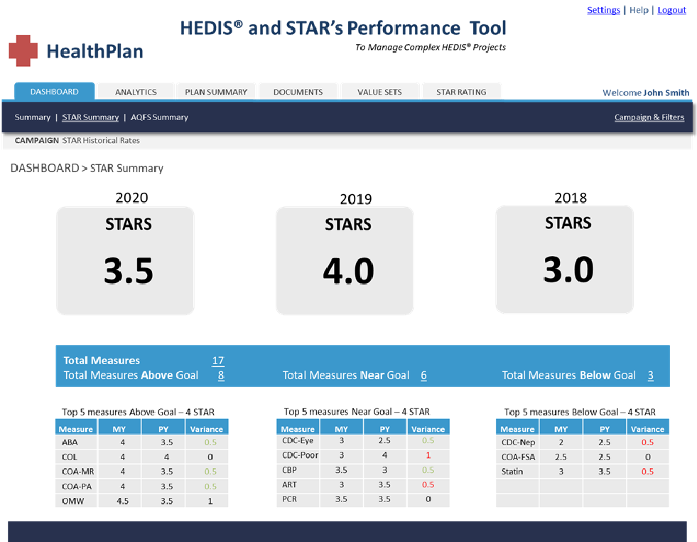 The STAR Ratings tab provides hi